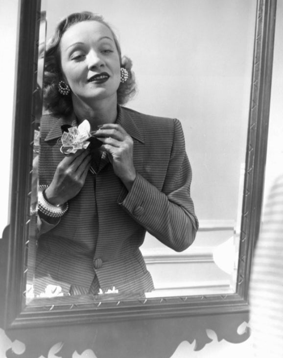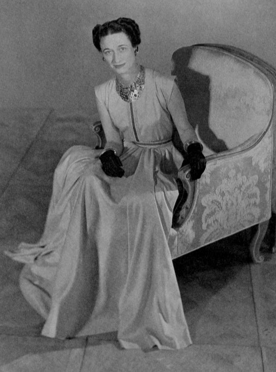 Wallis, Duchess of Windsor photographed by Horst P. Horst in the 1940s wearing a Mainbocher silk shantung dress with a Cartier necklace and cuffs in the style of the bracelet on offer. Prince Edward, Duke of Windsor, purchased the pair for the Duchess during the War, when they moved to Nassau. He added the hopeful inscription, “For a happier new year NASSAU 1-14-41 WE.”