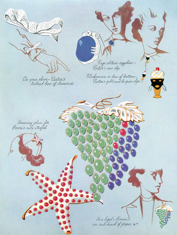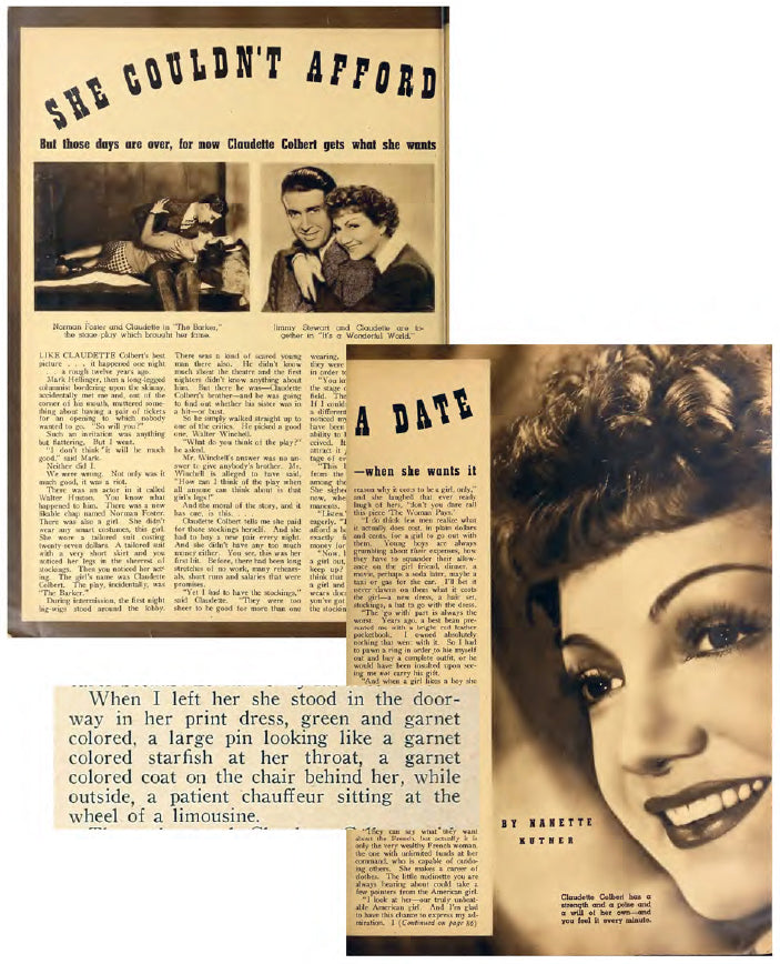 An article on Claudette Colbert in Modern Screen, August 1939, mentioned “a large pin looking like a garnet starfish at her throat,” that was undoubtedly her Boivin starfish.