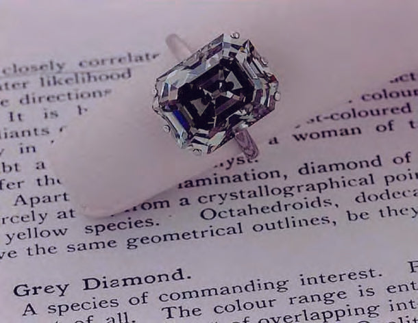 - 1 rectangular-cut gray diamond, weighing 10.67 carats