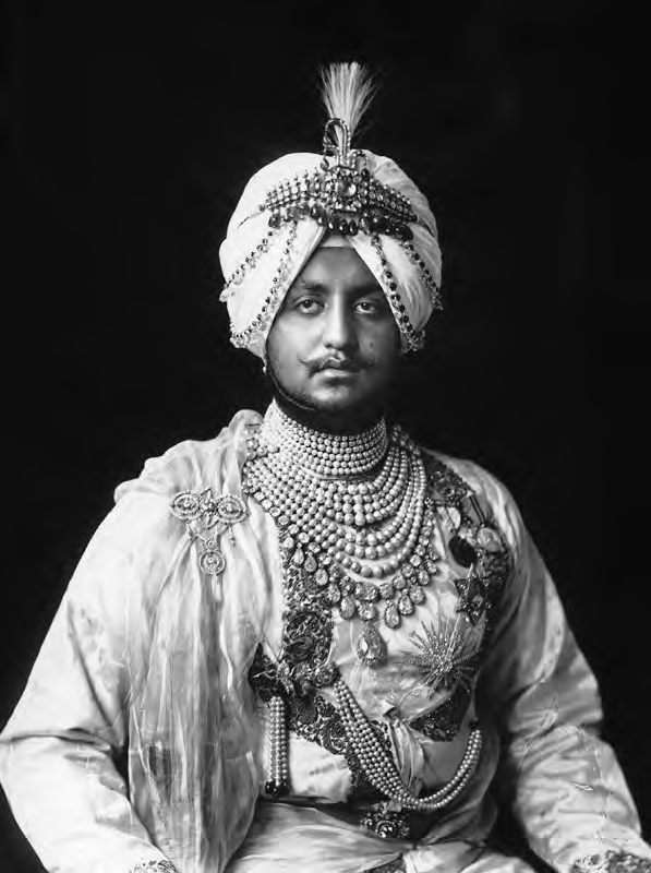 Bhupinder Singh, Maharaja of Patiala, adorned with natural pearls and Golconda diamonds, photograph circa 1930.