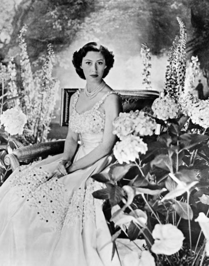 Known for her sense of style, Princess Margaret championed Dior’s New Look with a nipped in waist and wide skirt such as the one shown here, circa 1950. She was considered one of the best dressed women in the world.