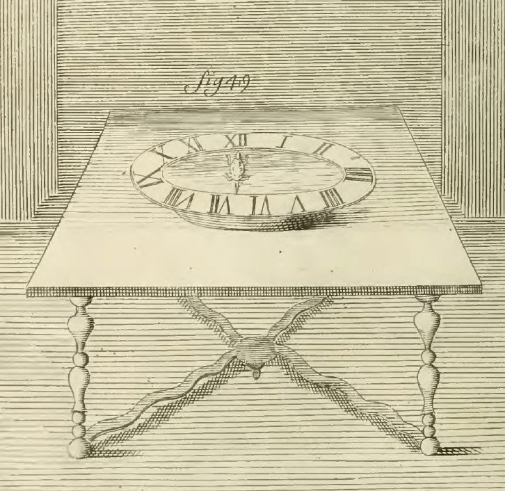 The designers at Cartier were inspired to create these clocks by a seventeenth-century French inventor of fantastic machines Nicolas Grollier de Servière. An engraving in the posthumous book depicted a desk clock in the form of a bowl with a floating turtle pointing to the hour. No explanation of the mechanism was given, stating only “This machine is all the more surprising in that nothing seems to make the turtle move in water.” Cartier may have seen this idea in an 1895 article in La Nature by Paris clockmaker Mathieu Planchon who attempted to understand the clock, theorizing “an ingenious combination of magnets.”