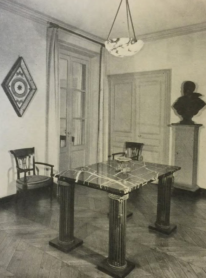 This clock was purchased by Bernard Boutet de Monvel, one of the most famous portrait painters of the twentieth century known for his clean colorful paintings unifying the Art Deco and American Precisionism. His models were royalty and socialites including Vanderbilts, Fricks, Astors, and Whitneys. He is most famous for his paintings of the Maharajah of Indore, one in a suit and another in traditional royal dress. An elegant and handsome man, Boutet de Monvel decorated his homes with a stunning and refined taste. He looked, as he said, “for the luxury of simplicity.” A period photograph shows the magnificent clock displayed in the entry hall on a table designed by Boutet de Monvel with a marble top and column legs complimenting the design of the clock. A magnificent feat of engineering and artistic ingenuity showcasing Cartier’s interest in mechanical history and Bernard Boutet de Monvel’s singular taste, this clock is highly coveted for its innovation, beauty, and rarity.